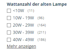 Prüfen Sie in jedem Fall Ihre alte Lichtquelle und suchen Sie einen Ersatz mit derselben Wattzahl. Auf unserer Website können Sie den Filter auf der Seite verwenden, um einen LED-Ersatz für die Leistung Ihrer alten Lampe zu finden.