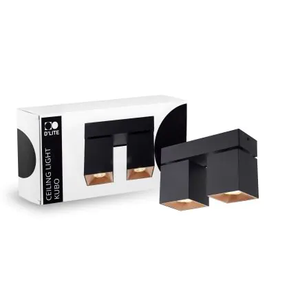 Beschreibung D'Lite Deckenleuchte Kubo Aluminium Schwarz Schwenkbar und Rotierbar | IP20 - Geeignet für 2x GU10
