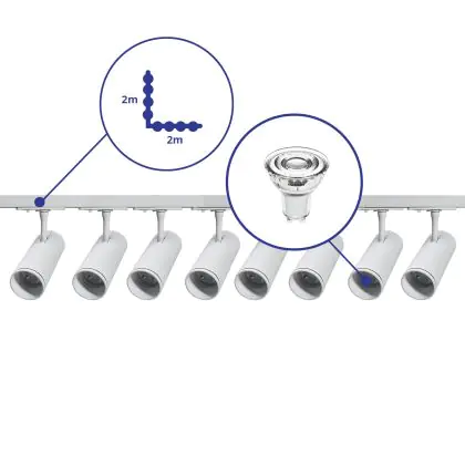 Mit einem Gesamtenergieverbrauch von nur 3W ist dieses 1-Phasen LED-Schienensystem besonders energieeffizient. Im Vergleich zu herkömmlichen Halogenlösungen sparen Sie mindestens 50 % Energie- und Wartungskosten.