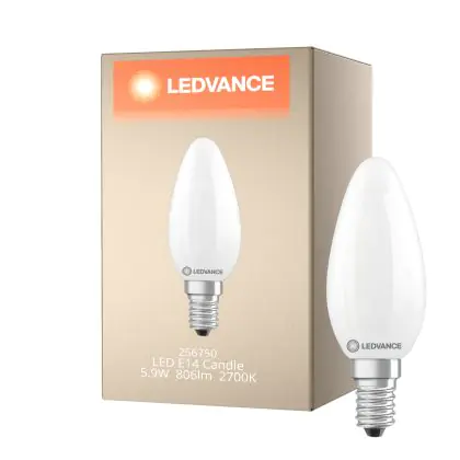 Die Ledvance Classic LED E14 Kerze Matt 5.9W 806lm - 827 Extra Warmweiß | Ersatz Für 60W ist eine effiziente E14 LED-Lampe mit Retrodesign und der perfekte Ersatz für Ihre konventionellen 60W Lampen mit E14. Zudem strahlt sie Licht in der Farbtemperatur aus und punktet durch eine lange Lebensdauer.