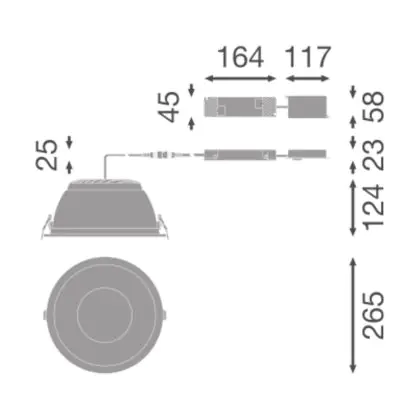 | Herstellername | DOWNLIGHT COMFORT HIGH EFFICIENCY DALI UGR<19 D250 P 36W 830 U19 WT | |