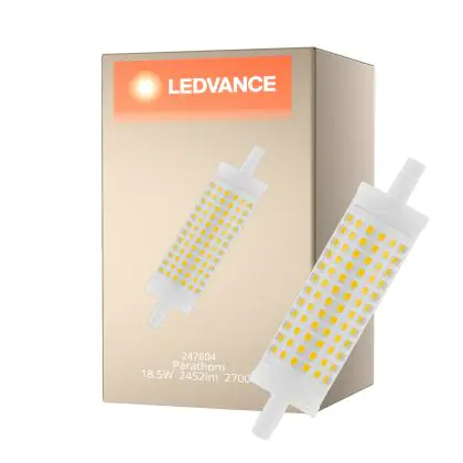 Die Ledvance LED Line R7s 118mm 18.5W 2452lm - 827 Extra Warmweiß | Dimmbar - Ersatz für 150W ist eine effiziente R7s LED-Lampe und der perfekte Ersatz für Ihre konventionelle Halogen-Stablampe mit 150W. Zudem strahlt sie Licht in der Farbtemperatur 2700K - Extra Warmweiß aus und punktet durch eine lange Lebensdauer.