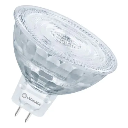 Die Ledvance Performance LED-Spot Reflektor GU5.3 MR16 3.4W 230lm 36D - 927 Extra Warmweiß | Höchste Farbwiedergabe - Dimmbar - Ersatz für 20W ist eine effiziente GU5.3 LED-Lampe und der perfekte Ersatz für Ihre konventionelle Halogenlampe mit 20W und einem GU5.3-Sockel, bei dem die beiden Stifte einen Abstand von 5,3 mm zueinander haben. Die Abkürzung MR16 zeigt Ihnen, dass der Reflektor einen Durchmesser von 5 cm hat. Zudem strahlt das Produkt Licht in der Farbtemperatur 2700K - Extra Warmweiß aus und punktet durch eine lange Lebensdauer.
