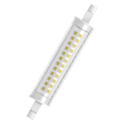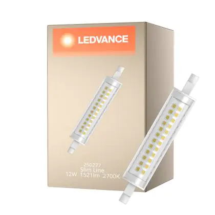 Die Ledvance Slim Line LED R7s 118mm Klar 12W 1521lm - 827 Extra Warmweiß | Ersatz Für 100W ist eine effiziente R7s LED-Lampe und der perfekte Ersatz für Ihre konventionelle Halogen-Stablampe mit 100W. Zudem strahlt sie Licht in der Farbtemperatur 2700K - Extra Warmweiß aus und punktet durch eine lange Lebensdauer.