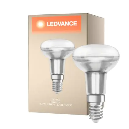 Die Ledvance Smart+ Wifi E14 Spot 3W 210lm - 827-865 Abstimmbares Weiß | RGBW - Ersatz für 25W ist eine effiziente E14 LED-Lampe und der perfekte Ersatz für Ihre konventionellen 40W Lampen mit E14-Sockel. Zudem strahlt sie Licht in der Farbtemperatur 2700K - 6500K Tunable White + RGB aus und punktet durch eine lange Lebensdauer.