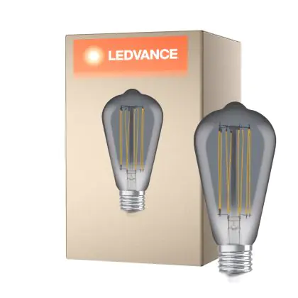 Die Ledvance Vintage 1906 LED E27 Edison Smoke 11W 500lm - 818 Extra Warmweiß | Dimmbar - Ersatz Für 42W ist eine effiziente E27 LED-Lampe mit Retrodesign und der perfekte Ersatz für Ihre konventionellen 42W Lampen mit E27. Zudem strahlt sie Licht in der Farbtemperatur 1800K - Extra Warmweiß aus und punktet durch eine lange Lebensdauer.