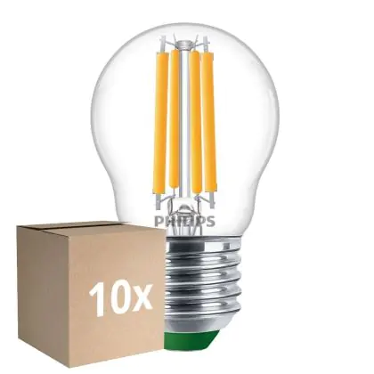 Die Mehrfachpackung 10x Philips MASTER LED Kerze Ultra Efficient E27 Kugel Klar 2.3W 485lm - 827 Extra Warmweiß | Ersatz Für 40W ist eine effiziente E27 LED-Lampe und der perfekte Ersatz für Ihre konventionellen 40W Lampen mit E27-Sockel. Zudem strahlt sie Licht in der Farbtemperatur aus und punktet durch eine lange Lebensdauer.