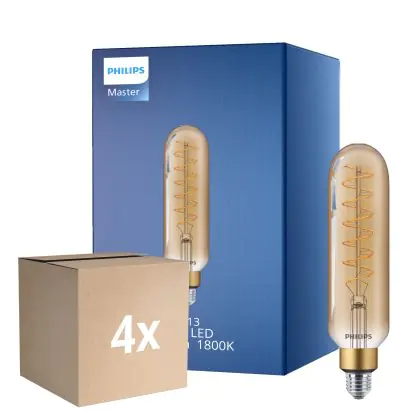 Die Mehrfachpackung 4x Philips Classic LED E27 Röhrenförmig Fadenlampe Gold 7W 470lm - 820 Extra Warmweiß | Ersatz Für 40W ist eine effiziente E27 LED-Lampe mit Retrodesign und der perfekte Ersatz für Ihre konventionellen 40W Lampen mit E27. Zudem strahlt sie Licht in der Farbtemperatur aus und punktet durch eine lange Lebensdauer.