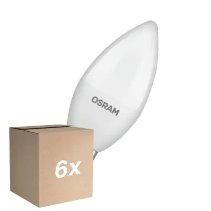 Die Mehrfachpackung 6x Osram LED Star Classic E14 Kerze Matt 4.9W 470lm - 840 Kaltweiß | Ersatz Für 40W ist eine effiziente E14 LED-Lampe und der perfekte Ersatz für Ihre konventionellen 40W Lampen mit E14-Sockel. Zudem strahlt sie Licht in der Farbtemperatur aus und punktet durch eine lange Lebensdauer.
