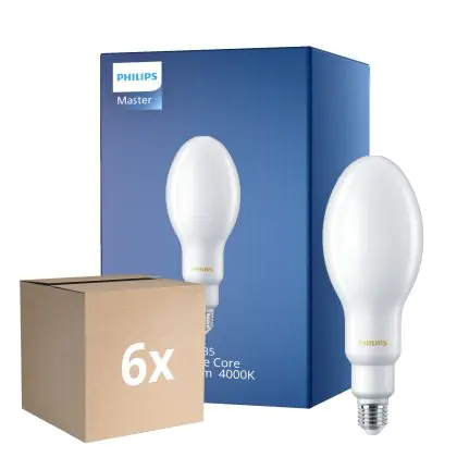Die Mehrfachpackung 6x Philips TrueForce Core LED E27 HPL/SON Matt 26W 4000lm 300D - 840 Kaltweiß | Ersatz Für 125W ist eine effiziente HPL LED-Lampe und der perfekte Ersatz für Ihre konventionelle HPL-Gasentladungslampe. Zudem strahlt das Produkt Licht in der Farbtemperatur 4000K - Kaltweiß aus und punktet durch eine lange Lebensdauer.