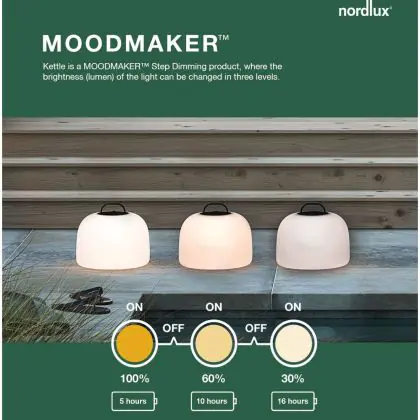 Beschreibung Nordlux Tischlampe Kettle Akku Weiß 4.8W 300lm - 827 Extra Warmweiß | 3-Stufen Dimmbar