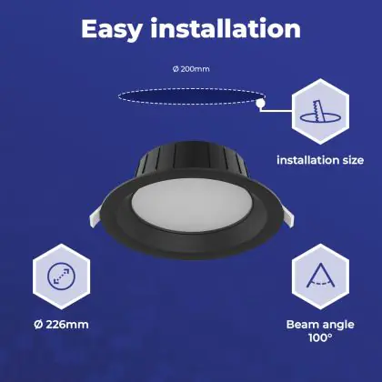 | Herstellername | Noxion LED Downlight Hera Medium Recessed Black 21W 2400lm 100D - 827-830-840 CCT | 226mm - Cutout 2 | |