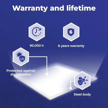 Wir von BeleuchtungDirekt haben mit dem LED-Panel von Noxion gute Erfahrungen gemacht. Daher bieten wir Ihnen für dieses Produkt eine Garantie von 6 Jahre an.