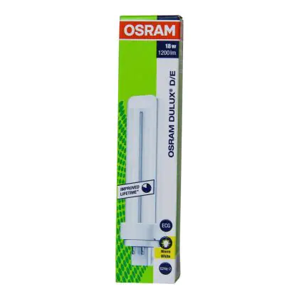 Die Osram Dulux D/E 18W 830 ist mit Energieklasse B ausgezeichnet. Aufgrund einer langen Lebensdauer von durchschnittlich 20.000 Stunden, müssen Sie sich lange nicht um Ersatz kümmern. Das Ende der Lebensdauer ist erreicht, sobald die Lampe zu blinken anfängt und Schwierigkeiten beim Start aufweist.
