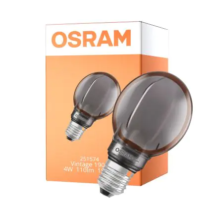 Die Osram Vintage 1906 LED E27 Globe Fadenlampe Smoke 80mm 4W 110lm - 818 Extra Warmweiß | Dimmbar - Ersatz Für 12W ist eine effiziente E27 LED-Lampe mit Retrodesign und der perfekte Ersatz für Ihre konventionellen 12W Lampen mit E27. Zudem strahlt sie Licht in der Farbtemperatur 1800K - Extra Warmweiß aus und punktet durch eine lange Lebensdauer.