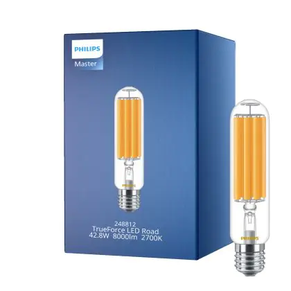 Die Philips TrueForce öffentlich (Straßen – SON) Master LED SON-T M E40 42.8W 8000lm 300D - 727 Extra Warmweiß ist eine effiziente LED-Gasentladungslampe und der perfekte Ersatz für Ihre konventionelle Gasentladungslampe. Zudem strahlt das Produkt Licht in der Farbtemperatur 2700K - Extra Warmweiß aus und punktet durch eine lange Lebensdauer.